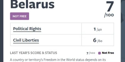 Беларусь – сярод найменш вольных краін свету паводле Freedom House