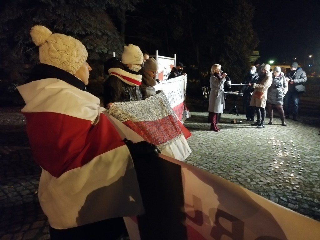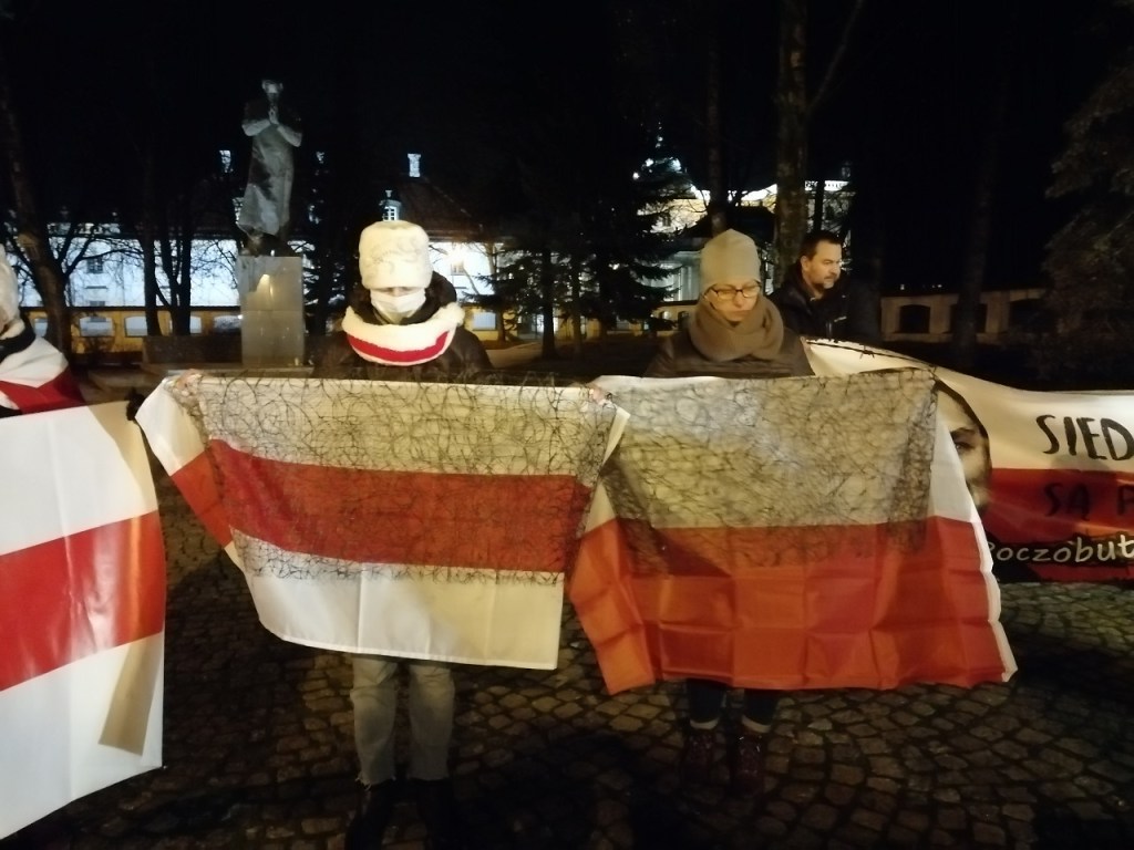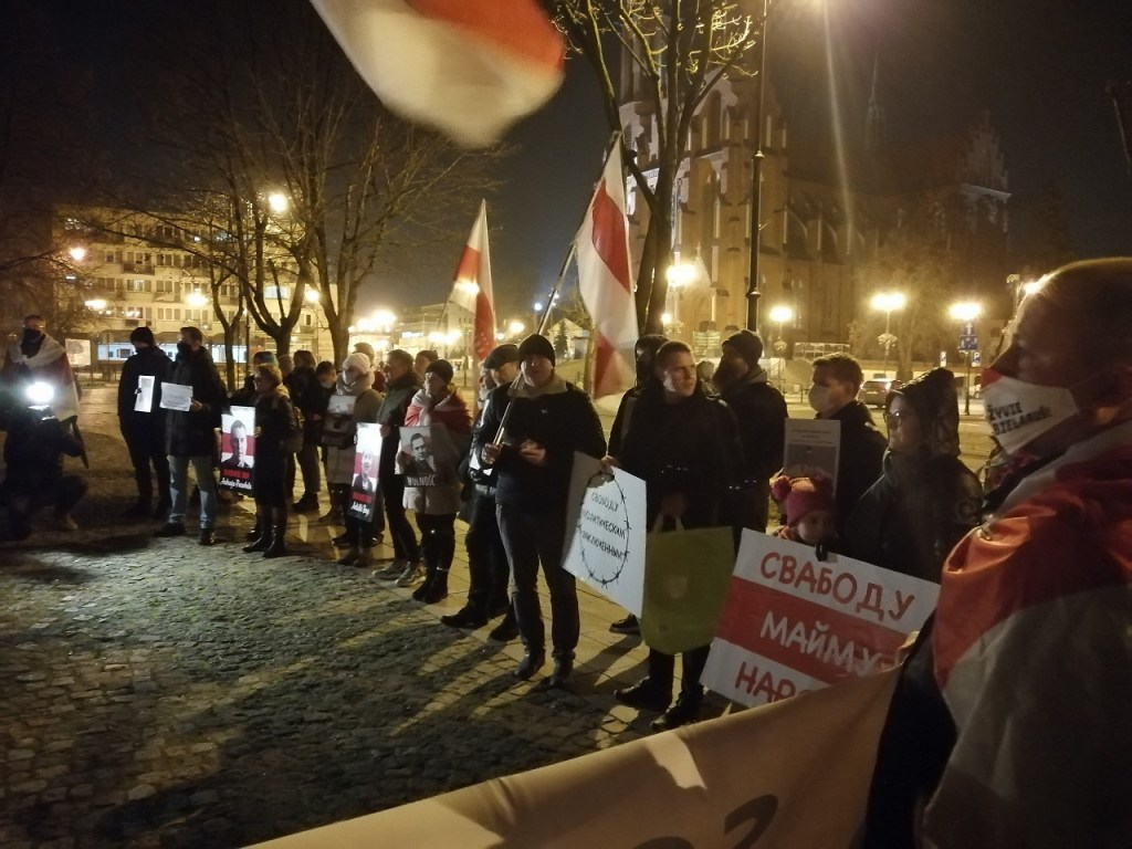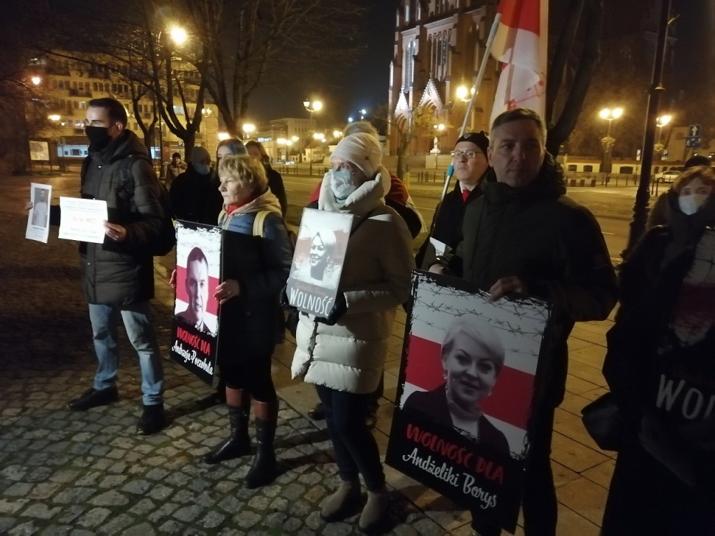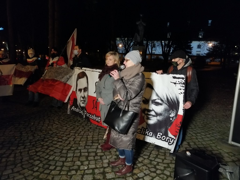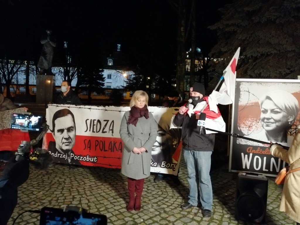 Чарговая акцыя салідарнасці са зняволенымі лідарамі Саюзу палякаў у Беларусі Анджэем Пачобутам і Анжалікай Борыс прайшла ў Беластоку. Яна адбывалася 25 лістапада, роўна 8 месяцаў таму Пачобут і Борыс былі затрыманыя і пасля арыштаваныя. Акцыю арганізоўваю Саюз палякаў у Беларусі – тыя яго актывісты, якія зараз апынуліся на выгнанні. Традыцыйна актыўны ўдзел у салідарнай акцыі ўзялі і прадстаўнікі беларускай супольнасці. Усяго каля помніка Ежы Папялушку сабралася каля 50-60 чалавек.