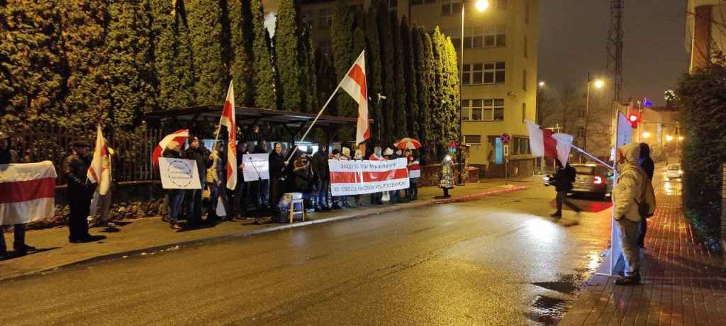 Увечары 10 снежня ў Беластоку прайшла чарговая акцыя салідарнасці з палітычна зняволенымі ў Беларусі. Прымеркаваная яна была да міжнароднага Дня сусветнай дэклярацыі правоў чалавека. Акцыя прайшла на вуліцы насупраць консульства Рэспублікі Беларусь.