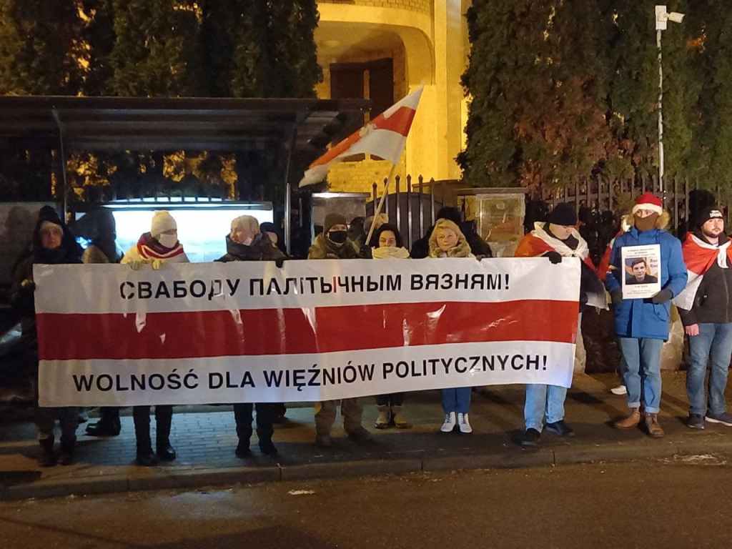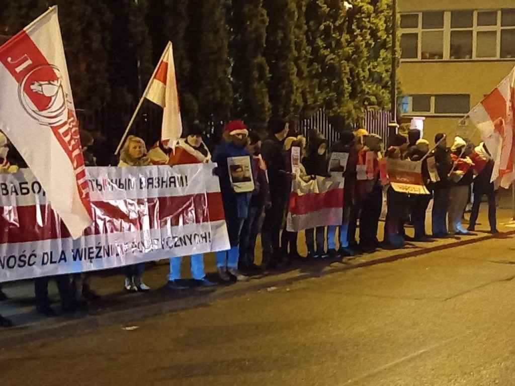 Увечары 14 снежня, пасля абвешчання вялізных карных прысудаў шасці беларускім палітвязням (Сяргею Ціханоўскаму, Мікалаю Статкевічу, Уладзіміру Цыгановічу, Ігару Лосіку, Арцёму Сакаву і Дзмітрыю Папову) у Беластоку прайшла акцыя салідарнасці.