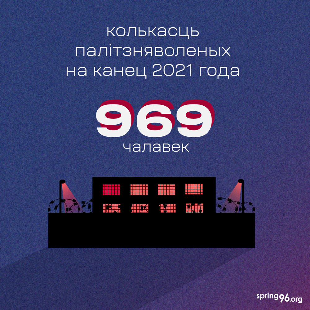 На канец 2021 года ў Беларусі налічвалася 969 палітвязняў. (https://prisoners.spring96.org/) Гэта самая вялікая колькаць зняволеных па палітычных матывах за ўсю гісторыю незалежнай Беларусі.