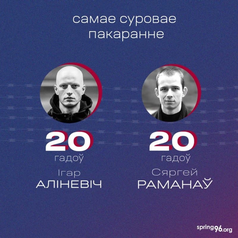 Па 20 гадоў пазбаўлення волі атрымалі анархісты Ігар Аліневіч і Сяргей Раманаў. Гэта самыя суровыя выракі па палітычных судовых разглядах.