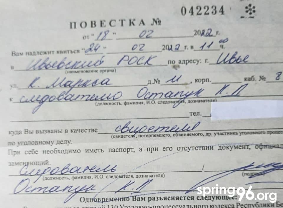 Жыхарку Іўя Рэгіну Лавор, асуджаную да 2 гадоў «хатняй хіміі» за абразу міліцыянтаў, выклікаюць на 24 лютага ў мясцовы РАСК сведкай па крымінальнай справы. Што гэта за справа – Рэгіна не ведае.