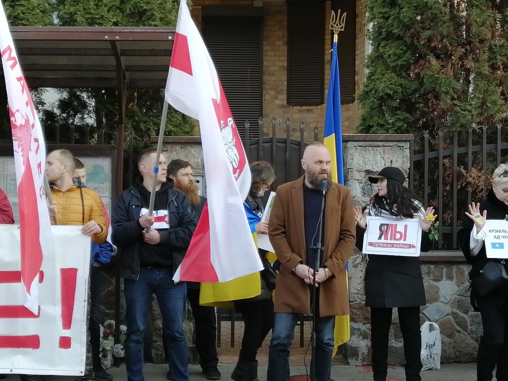 З беларускіх актывістаў выступілі Ян Абадоўскі, Павел Станкевіч, Сяргей Верамеенка. Была прачытаная адмысловая малітва за Украіну. Беларуская дыяспара анансавала далейшы збор сродкаў і рэчаў на карысць Украіны, а таксама беларусаў, якія змагаюцца ў тэрытарыяльнай абароне.