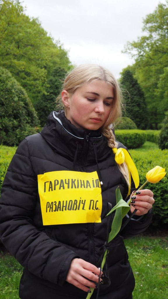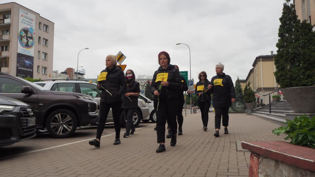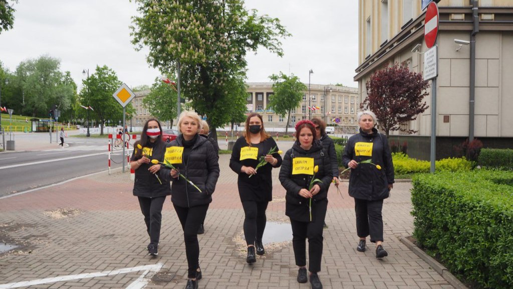 21 траўня жанчыны з беларускай дыяспары Беластоку выйшлі на шпацыр з жоўтымі кветкамі і біркамі з прозвішчамі палітзняволеных, якіх судзяць па справе Мікалая Аўтуховіча.