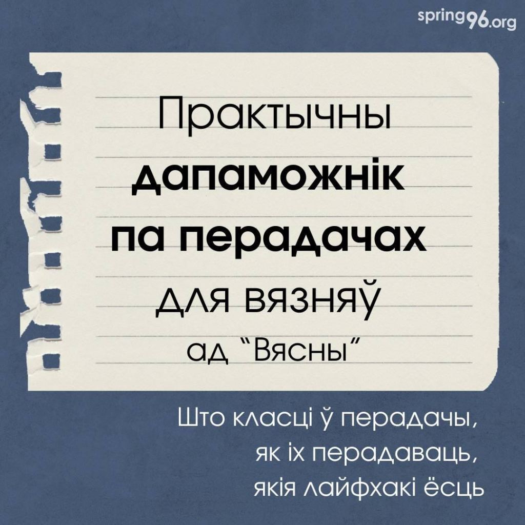 За кратамі знаходзяцца сотні беларусаў, якія маюць патрэбу ў дапамозе і падтрымцы. Праваабарончы цэнтр “Вясна” з дапамогай сваякоў вязняў склаў практычны дапаможнік па перадачах у СІЗА і калоніі, які спросціць збор пасылак і перадач. Што класці ў перадачы, як іх перадаваць, якія лайфхакі ёсць – у дапаможніку ад “Вясны”.