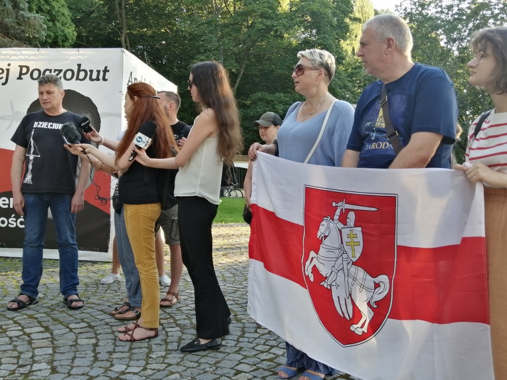 Акцыя сабрала каля трох дзясяткаў прадстаўнікоў новай эміграцыі з Беларусі – беларусаў і палякаў. На акцыі выступілі Ян Роман, Сяргей Верамеенка і Алесь Каваленка.