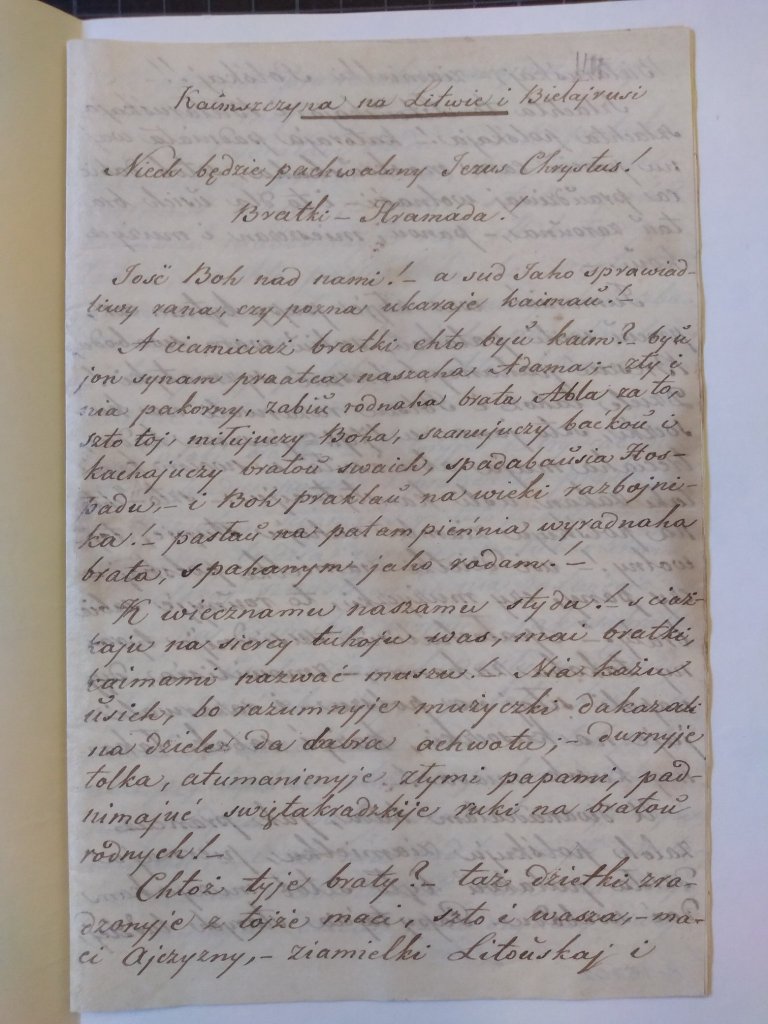 Тыдзень даследчай працы ў бібліятэках і музеях Вільні аказаўся плённым. У фондах Нацыянальнага музея Літвы сярод матэрыялаў Літоўскага правінцыяльнага камітэта знойдзеныя некалькі беларускамоўных тэкстаў відавочна з асяроддзя Кастуся Каліноўскага. Почырк некаторых (“Do Ciabie swiaty ojcza…”, чатырохрадкоўе на адвароце шостага нумару “Мужыцкай праўды”) падобны на почырк Каліноўскага. Да гэтага варта дадаць тэкст ненадрукаванага нумару “Мужыцкай праўды”, які быў апублікаваны ў гадавіку Homo Historicus, 2019 ( https://kamunikat.org/usie_czasopisy.html?pubid=61815). Гэты рукапіс таксама знаходзіцца ў фондах НМЛ.