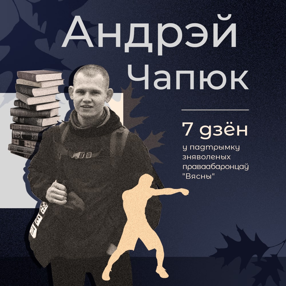 Валанцёр Андрэй Чапюк (https://prisoners.spring96.org/be/person/andrej-capiuk) амаль два гады знаходзіцца за кратамі. Яго асудзілі да 6 гадоў калоніі. Вядома, што за гэты час Андрэй прачытаў шмат розных кніг, а таксама актыўна займаецца фізічнымі практыкаваннямі ў СІЗА.
