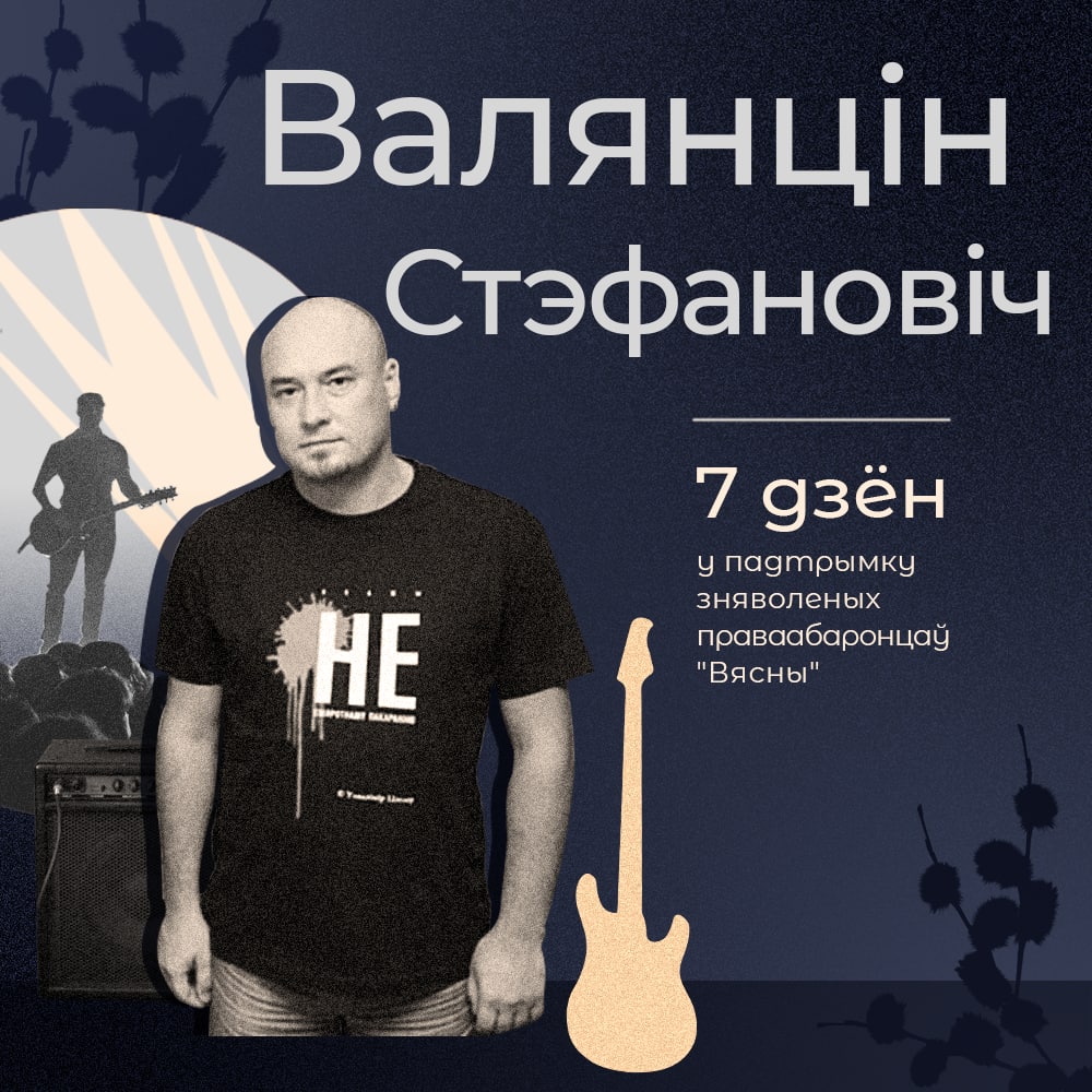 Намеснік старшыні “Вясны” Валянцін Стэфановіч (https://prisoners.spring96.org/be/person/valjancin-stefanovicz) быў затрыманы 14 ліпеня мінулага года і з таго часу знаходзіцца ў СІЗА-1. Валік — аматар рок-музыкі, фанат розных беларускіх і замежных гуртоў.