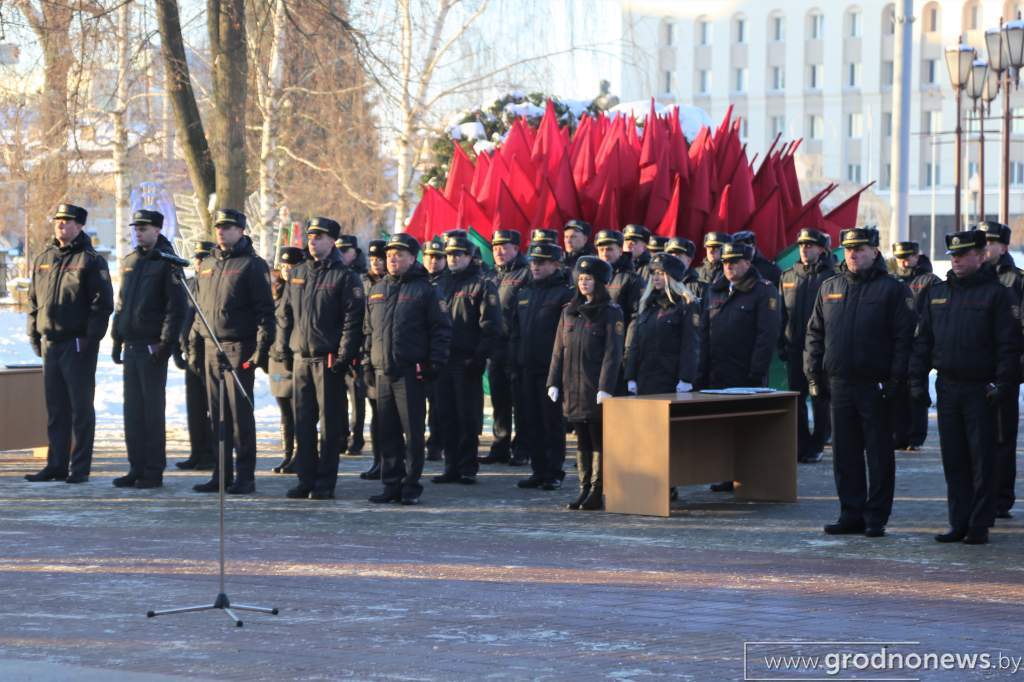 У Гародні ў Парку Жылібера ля помніка савецкім воінам прайшло ўзнагароджанне міліцыянтаў Гарадзенскай вобласці, якія “с честью выполняют поставленные задачи». Пра гэта паведамляюць дзяржаўныя прапагандысцкія медыйныя органы.