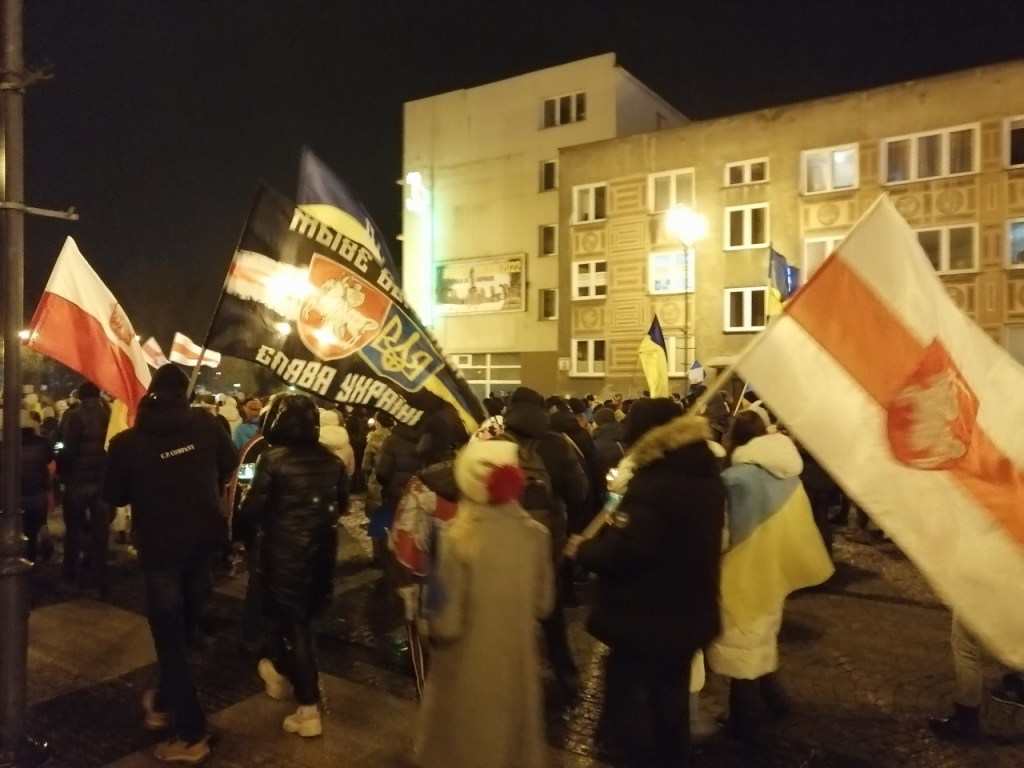 Увечары 24 лютага ў Беластоку прайшла амаль тысячная акцыя супраць расейскай агрэсіі. Яна была прымеркавана да гадавіны ўварвання маскоўскага войска з тэрыторыі фактычна акупаванай Беларусі на тэрыторыю суверэннай Украіны.