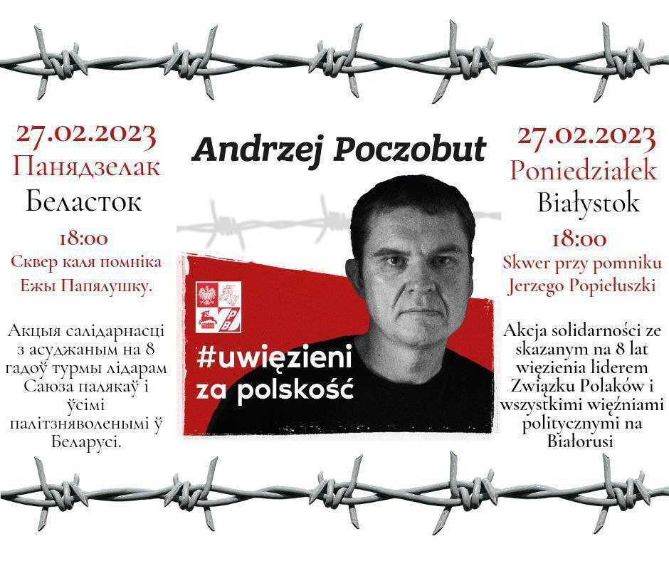 27-га лютага ў Беластоку пройдзе чарговая акцыя салідарнасці з засуджаным на 8 гадоў турмы лідарам Саюза палякаў на Беларусі Анджэем Пачобутам.