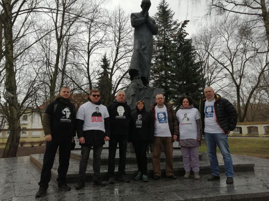 У Беластоку пасля абвешчання прысуду па крымінальнай справе “Вясны” вядомыя беларускія праваабаронцы і грамадскія актывісты, сябры Саюзу палякаў у Беларусі, выявілі сваю салідарнасць са зняволенымі. Яны сфатаграфаваліся ў знакавым месцы гораду каля помніка Ежы Папялушку і ля банера іншаму палітвязню – Анджэю Пачобуту.
