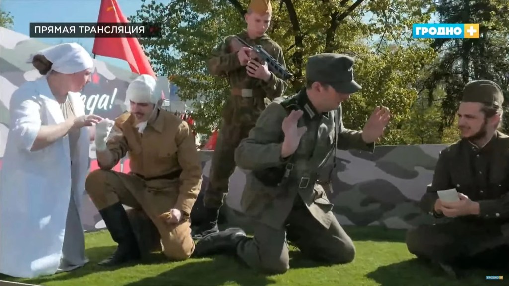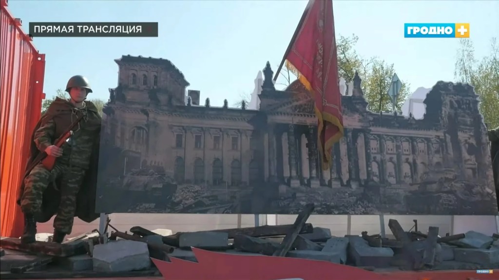 У Гародні на 9 мая адбыўся савецка-расейскі парад. На ім была ўся сімволіка мілітарызму і культу “победобесія”. Гарадзенскі шклозавод запісваў у дабравольцы, «ГроднаГандальСэрвіс» ехаў «на Берлін», а тытунёвая фабрыка «Нёман» паказвала вайсковую штодзённасць. Сярод іншага адбыўся парад стылізаваных аўтамабіляў «Дороги Победы на благо страны». На мерапрыемстве быў поўны набор савецкай прапаганды – ад Леніна да “палонных немцаў”. Шкада, што не паведамляюцца прозвішчы рэжысёраў гэтага мілітарысцка-чаднага “празднічного шоу”.