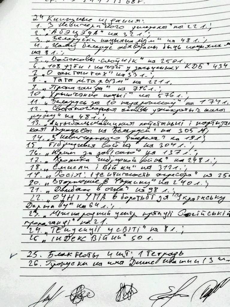 «З невичерпного джерела», «Абэцэда», «Беларускі нацыяналізм», «Чаму беларус абавязаны быць нацыяналістам», «Вайсковы слоўнік», «108 дзён і начэй у засценках КДБ», «О сектантах», «Таталітарызм», «Прапаганда», «Хрышчэнне нацыі», «Беларусь за 10 падарожжаў», «Светапоглядныя асновы дэмакратычнага руху», «Антыбальшавіцкія паўстанні і партызанская барацьба на Беларусі», «Гібридна война», «Крим за завісою», «Хроника гибридной войны», «Смисли і війни», «Росія: ідентичность агресора», «Вторжение в Украину», «Донбасс в огне», «ОУН і УПА в боротьбі за Українську Державу», «Міжнародний центр протидіі Російській пропаганді», «Тенденціі у світі», «Індекс війни».