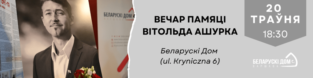 “21 траўня 2021 года ў калоніі загінуў палітзняволены Вітольд Ашурак. Гэта герой Беларусі і наша сумленне. Запрашаем прыняць удзел у вечарыне ягонай памяці, якая адбудзецца ў Беларускім Доме.