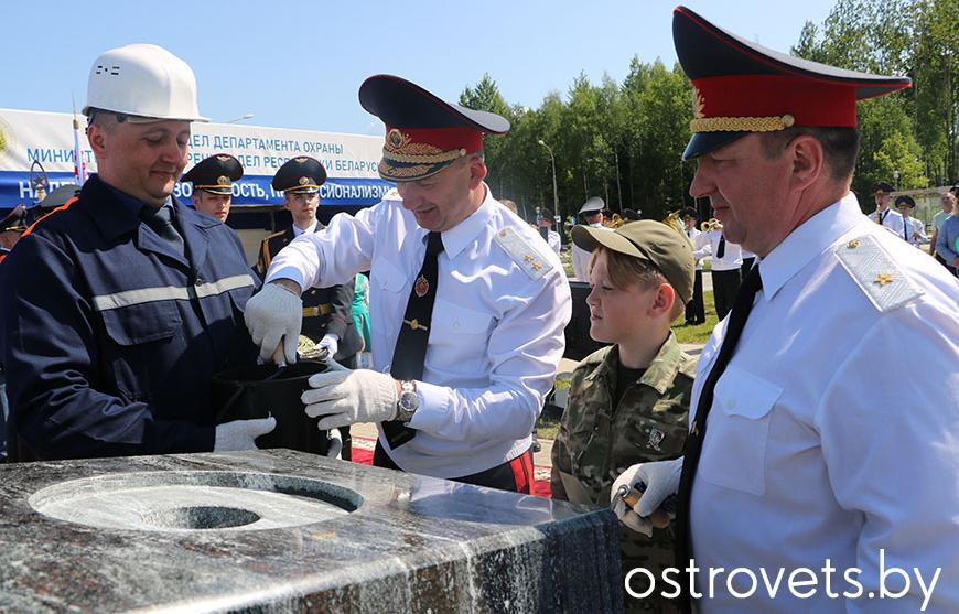 Капсулу з “пасланнем нашчадкам” заклалі на месцы ўзвядзення будынка Дэпартамента аховы МУС ў Астраўцы. Паводле задумы міліцыянтаў капсула будзе адкрыта ажно ў 2052 годзе – у дзень нібыта 100-годдзя службы аховы.
