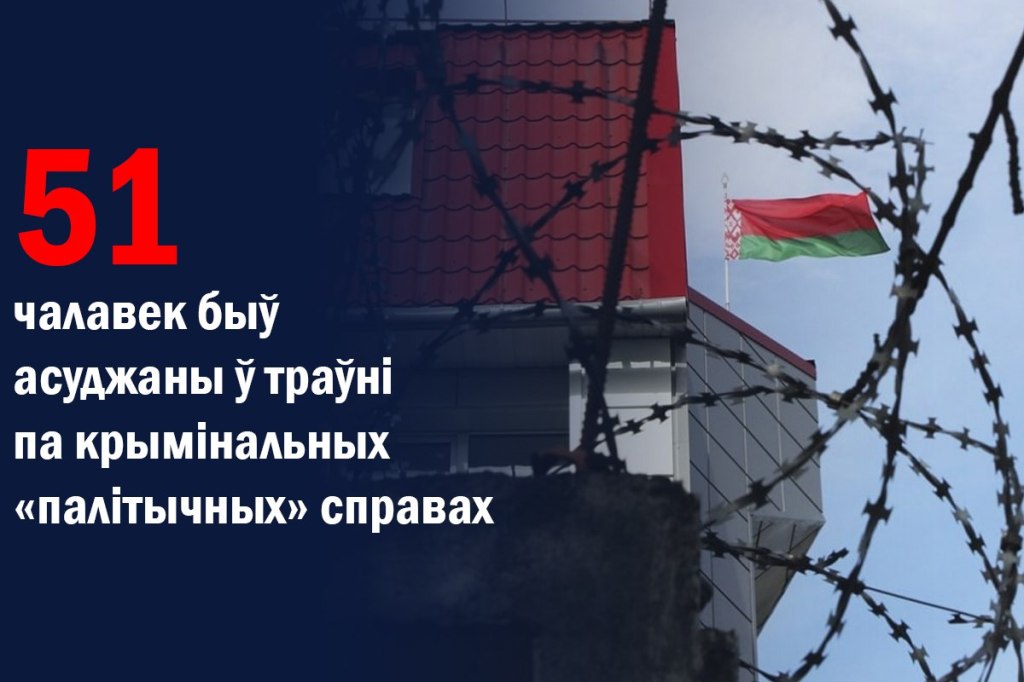 Па «пратэсных» крымінальных справах асуджана не менш за 51 чалавека, з якіх 17 жанчын і 34 мужчыны;