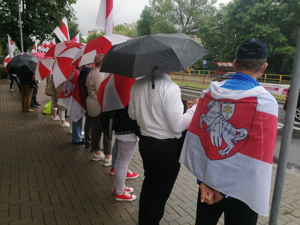 У Беластоку 18 чэрвеня прайшла акцыя падтрымкі палітвязняў, якія зняволены ў турмах Беларусі. Прайшла яна ў форме “ланцуга салідарнасці”. Каля 100 чалавек выстраіліся на ходніку ўздоўж вуліцы Браніцкага, што перпендыкулярная вуліцы Электрычнай, дзе консульства Рэспублікі Беларусь.