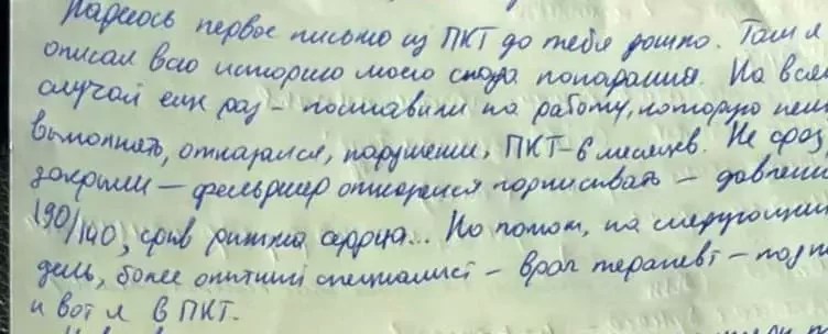 «Фельчарка адмовілася падпісаць даведку, што ён паводле стану здароўя можа знаходзіцца ва ўмовах ПКТ, бо пры аглядзе быў зафіксаваны зрыў рытму сэрца і ціск 190/140. Але на наступны дзень прыйшоў больш дасведчаны медык — доктар-тэрапеўт і, падпісаўшы даведку, адправіў яго ў ПКТ».