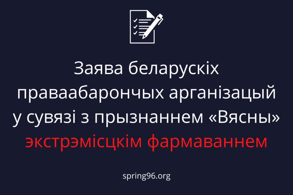 Рашэнне ўладаў прызнаць Праваабарончы цэнтр “Вясна” “экстрэмісцкім фармаваннем” з’яўляецца палітычна матываваным пераследам, звязаным з мірнай рэалізацыяй людзьмі сваіх правоў і свабодаў. Мы расцэньваем яго як чарговы крок у рамках маштабнай палітыкі знішчэння арганізацый грамадзянскай супольнасці, беларускага праваабарончага руху, адвольнага выкарыстання беларускімі ўладамі антыэкстрэмісцкага заканадаўства з мэтай падаўлення грамадзянскага актывізму. Мы расцэньваем яго як чарговы крок ціску на законную праваабарончую дзейнасць канкрэтнай арганізацыі — Праваабарончага цэнтра “Вясна”, які адбыўся, у тым ліку, пасля адміністрацыйнага і крымінальнага пераследу яго кіраўніцтва, сябраў, валанцёраў, прызнання экстрэмісцкімі яго інфармацыйных рэсурсаў.