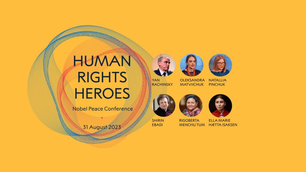 Нобелеўская канферэнцыя міру 2023 адзначае дасягненні праваабаронцаў, вызначае рызыкі, з якімі яны сутыкаюцца, і заклікае да дзеянняў у падтрымку іх працы.
