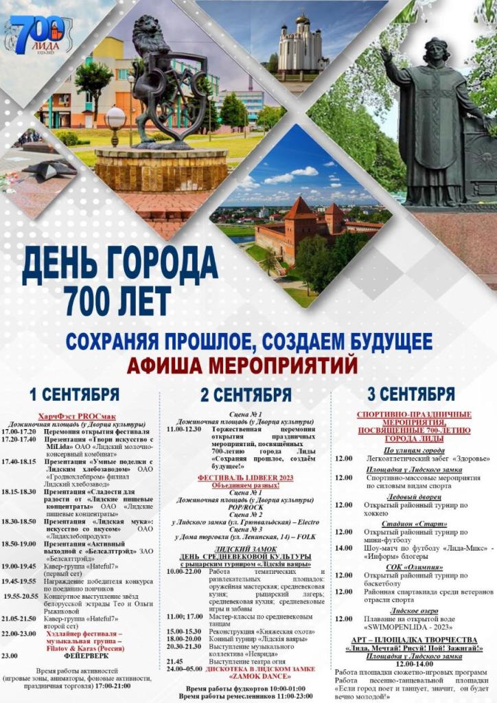 Ажно некалькі дзён Ліда будзе святкаваць свае 700-ыя ўгодкі. Апублікавана поўная праграма забаўляльных мерапрыемстваў. На жаль, у яшчэ зусім нядаўна адным з самых беларускіх гарадоў краіны ў час фэсту будзе пераважаць чужая расейская мова. Нават праграмная афіша надрукавана амаль уся па-расейску.