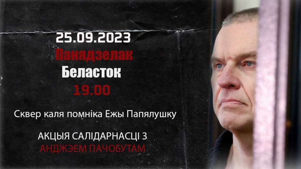 Акцыі, Навіны Акцыя салідарнасці з Анджэем Пачобутам Date: 22 Верасень 2023Author: harodniapravy У Беластоку 25 верасня адбудзецца чарговая акцыя салідарнасці з журналістам Анджэем Пачобутам ды іншымі палітзняволенымі. Акцыя пачнецца а 19.00 у беластоцкім скверы каля помніка Ежы Папялушку. Share this: Click to share on X(адкрываецца ў новым акне) X Click to share on Facebook(адкрываецца ў новым акне) Facebook Like Loading... Похожее