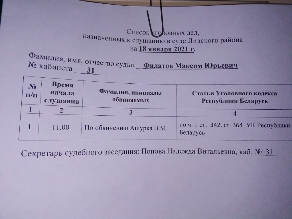 На наступны дзень 19 студзеня была заведзеная крымінальная і адміністрацыйная справы за салідарнасць з Вітольдам Ашуркам.