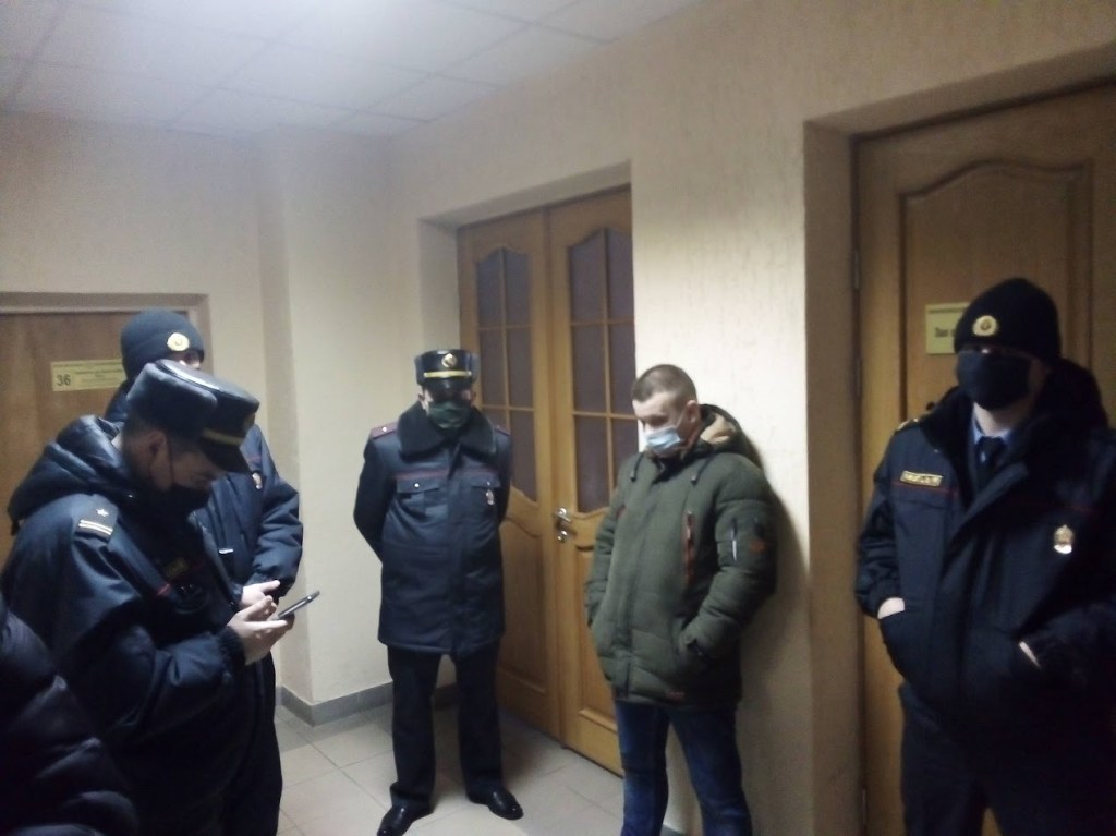 У суд загадзя былі сцягнутыя міліцыянты, каб фіксаваць тых, хто прыйшоў падтрымаць Вітольда. У грамадзянскай вопратцы – Яков Крыжченко, які здымаў усіх на відэакамеру і пасля ілжэсведчыў у судах. З тэлефонам у руках – Мікалай Рабушка, які складаў пратаколы на затрыманых. У траўні 2023 года Рабушка атрымаў падвышэнне ў званні – звычайны ўчастковы за “асаблівыя заслугі” стаў адразу падпалкоўнікам!