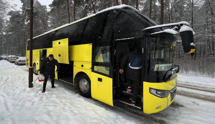 Новы аўтобус у «Нёмана» з’явіўся днямі. Гэта аўтобус кітайскай маркі «Zhongtong Bus» за $ 170 тысяч. На пярэднюю шыбу адразу змясцілі клубную сімволіку (назва клуба лацінкай, але па-расейску!) і вялікі праваслаўны крыж.