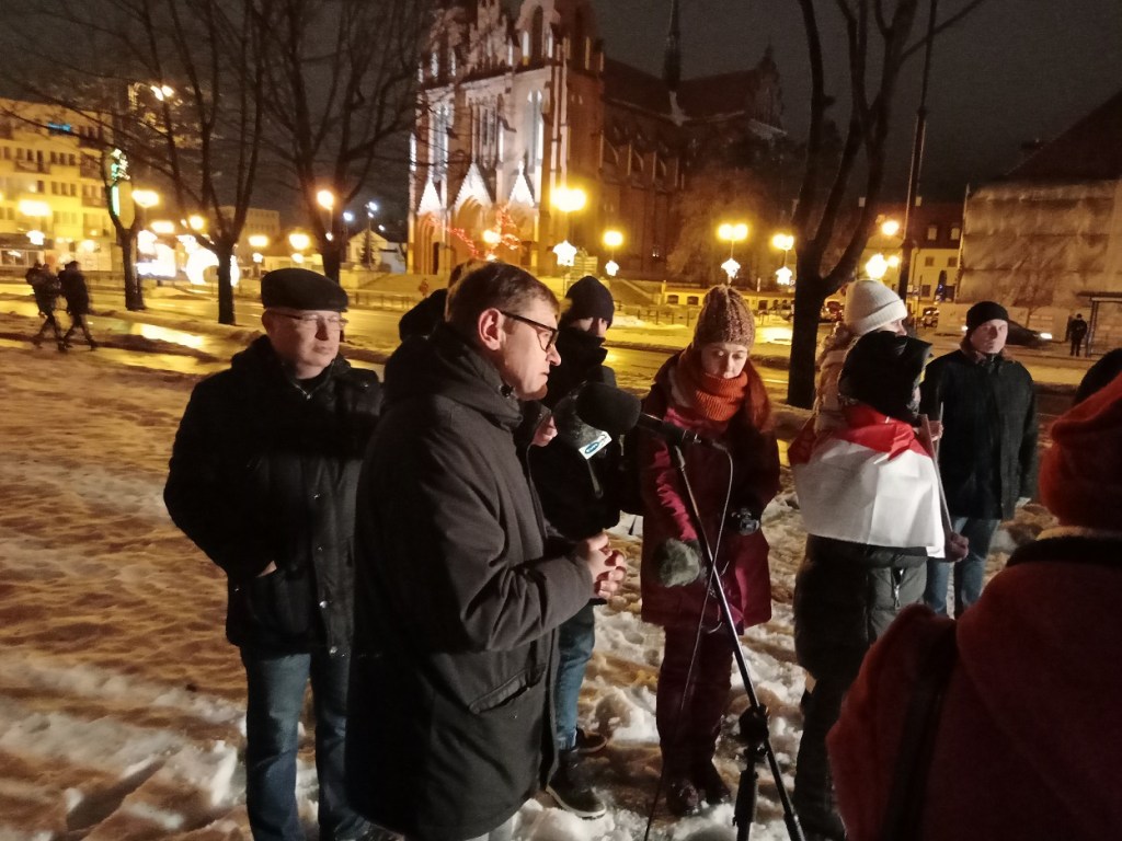 Чарговая акцыя салідарнасці з Анджэем Пачобутам традыцыйна прайшла 25-га дня месяца. Менавіта 25-га сакавіка 2021 года быў затрыманы гарадзенскі журналіст і дзеяч польскай нацыянальнай меншасці. У халодны вільготны вечар на заўсёднае месца салідарнасці – пад помнік Юзафу Пілсудскаму прыйшло каля 20 чалавек.