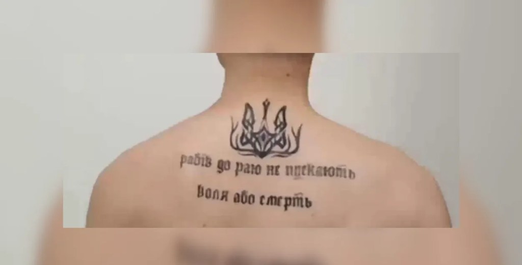 Сілавікі-губопиковцы затрымалі гарадзенца за ўкраінамоўную татуіроўку “Рабів до раю не пускають. Воля або смерть”. Відэа з ім з’явілася ў праўладным тг-канале.
