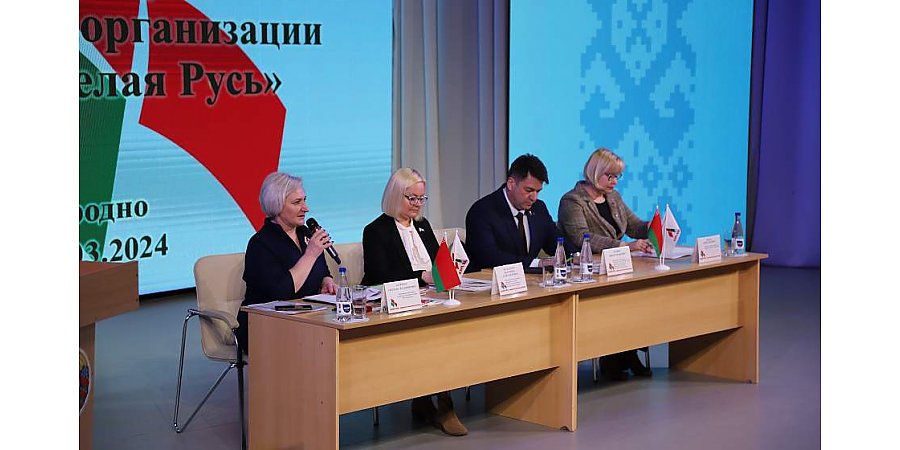На гэты раз прадстаўнікі праўладнай партыі сабраліся дзеля таго, каб абраць 10 дэлегатаў на так званае Всебелорусское народное собрание. У прэзідыуме засядалі наступныя персоны: председатель Гродненской областной организации РОО «Белая Русь» Виктор Пранюк, его заместитель Светлана Варяница, член центральной избирательной комиссии Республики Беларусь Екатерина Федосенко, начальник главного управления юстиции Гродненского облисполкома Елена Юргель. Прысутнасць апошняй як прадстаўніцы “вертыкалі” у прэзідыуме падкрэслівае, што гэта абсалютна праўладная партыя.