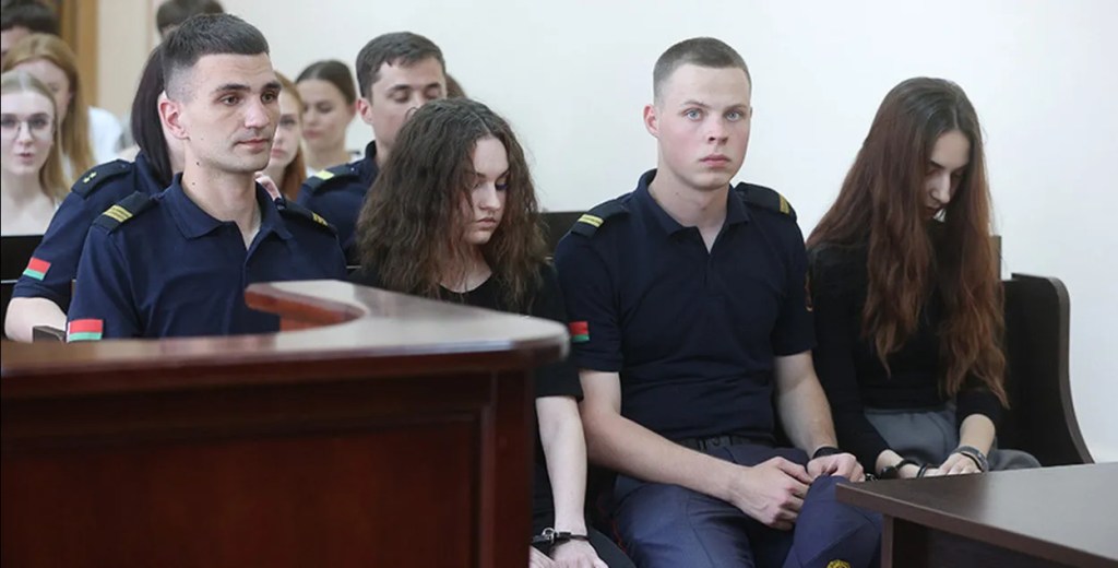 Дэманстратыўна-паказальнае судзілішча зладзілі проста на юрыдычным факультэце Гарадзенскага дзяржуніверсітэта імя Янкі Купалы. Пры тым дзяўчат трымалі ў кайданках. Невядома толькі ці маюць дзяўчыны дачыненне да гэтай навучальнай установы (яны 2001 года нараджэння), пра гэта не паведамляецца.
