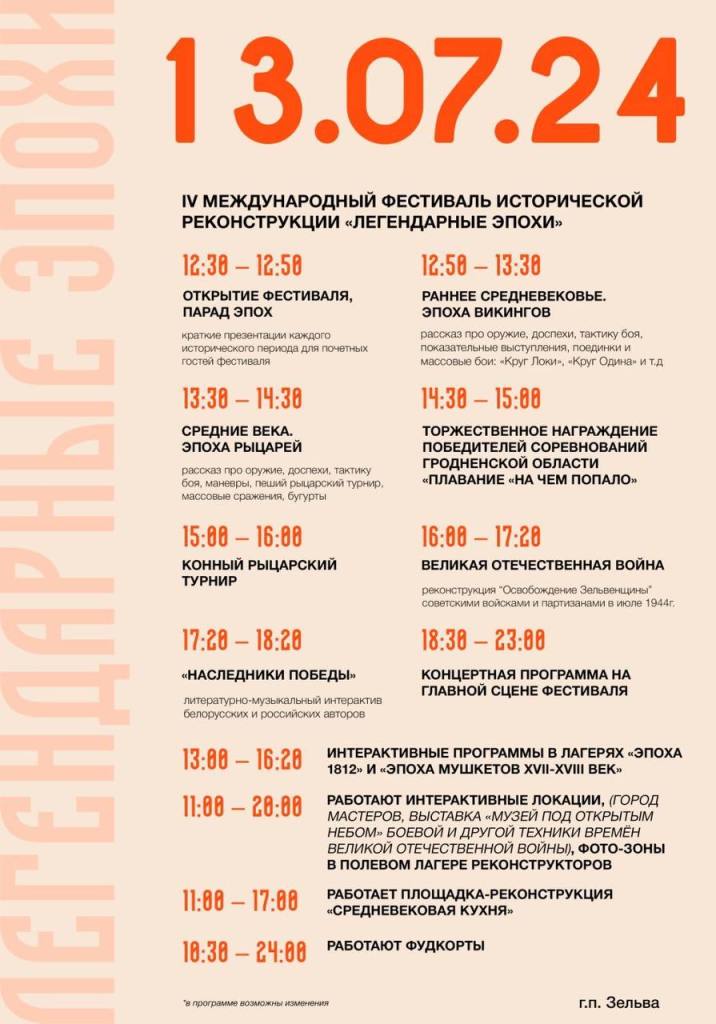 13 ліпеня ў Зэльве пройдзе Міжнародны фэст гістарычнай рэканструкцыі “Легендарные эпохи”.