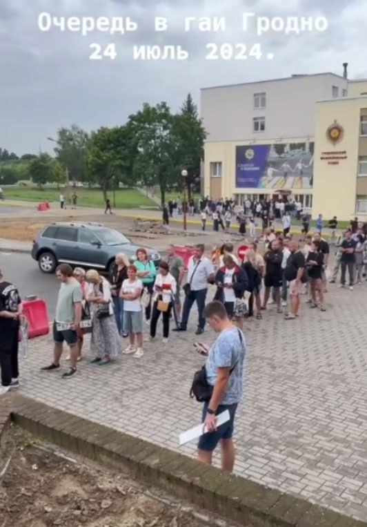 Апошнія некалькі дзён каля рэгістрацыйнага падраздзялення ДАІ УУС Гарадзенскага аблвыканкаму збіраюцца вялікія чэргі. Кіроўцы імкнуцца хутчэй перааформіць аўтамабілі з-за новых правіл уезду ў Польшчу.