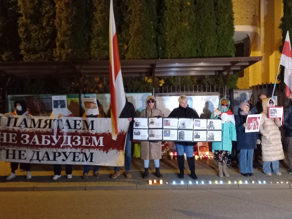 У Беластоку ўвечары 12 лістапада прайшла мемарыяльная акцыя. Яна адбылася на традыцыйным месцы ў Скверы Вольнай Беларусі каля цяперашняга консульства РБ. На яе сабралася каля 50 чалавек.