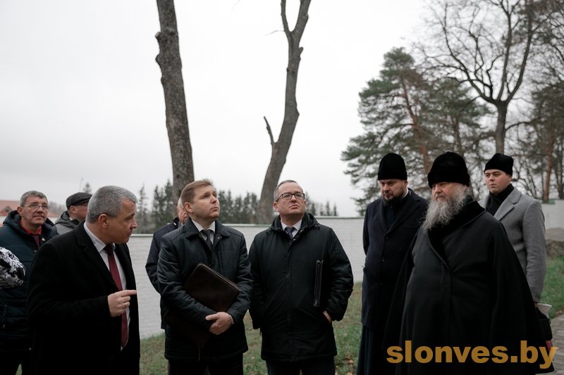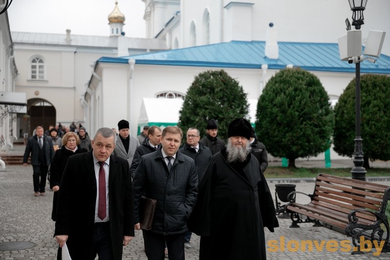 Чыноўнікі і царкоўнікі на чале з архіепіскапам Гурыем хадзілі па тэрыторыі манастыра і ў будынках, правялі чарговую нараду. Ці адбылася супольная трапеза – не паведамляецца. Затое “Слонімскі веснік” дэманструе паказуху.