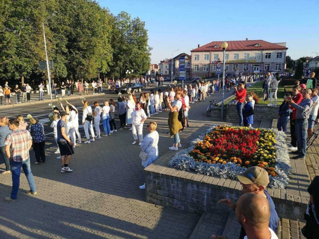Акцыя ў Наваградку пасля прэзідэнцкіх выбараў 2020 году. Крыніца: тэлеграм-канал Радыё “Свабода”