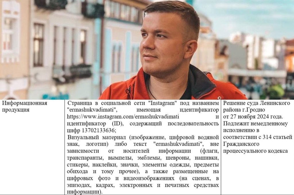 Instagram-старонку былога палітвязня Вадзіма Ермашука прызналі «экстрэмісцкай»