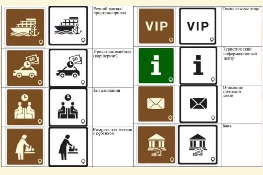 У новай сістэме прысутнічаюць 70 знакаў. Яны выкарыстоўваюцца для абазначэння аб’ектаў турыстычнай індустрыі (аграэкатурызм, актыўны турызм, гастранамічны турызм і інш.), транспарту (аўтавакзал, аэрапорт, каршэрынг і інш.) і гэтак далей.