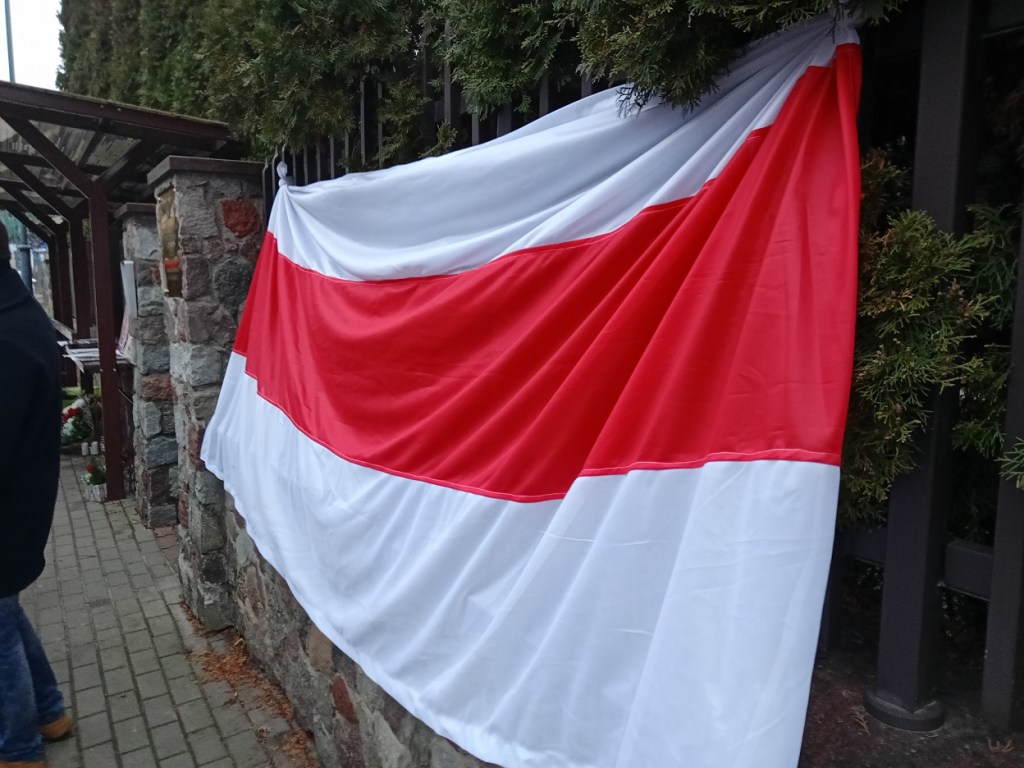 Удзельнікі акцыі трымалі ў руках нацыянальную сімволіку, а таксама вялікія банеры – “Лукашэнка скраў нашы галасы” і “Свабоду палітычным вязням” (па-беларуску і па-польску).