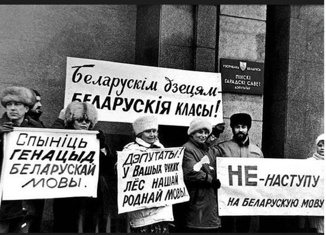 Але з ініцыятывы Аляксандра Лукашэнкі прайшоў нелегітымны рэферэндум 1995 года, па выніках якога было ўсталяванае двухмоўе, відавочна дыскрымінацыйнае ў адносінах да мовы тытульнай нацыі. Згадаем, што пісалася ў «Законе аб мовах», якім быў план беларусізацыі, ды ўявім сабе, як усё магло б выглядаць.