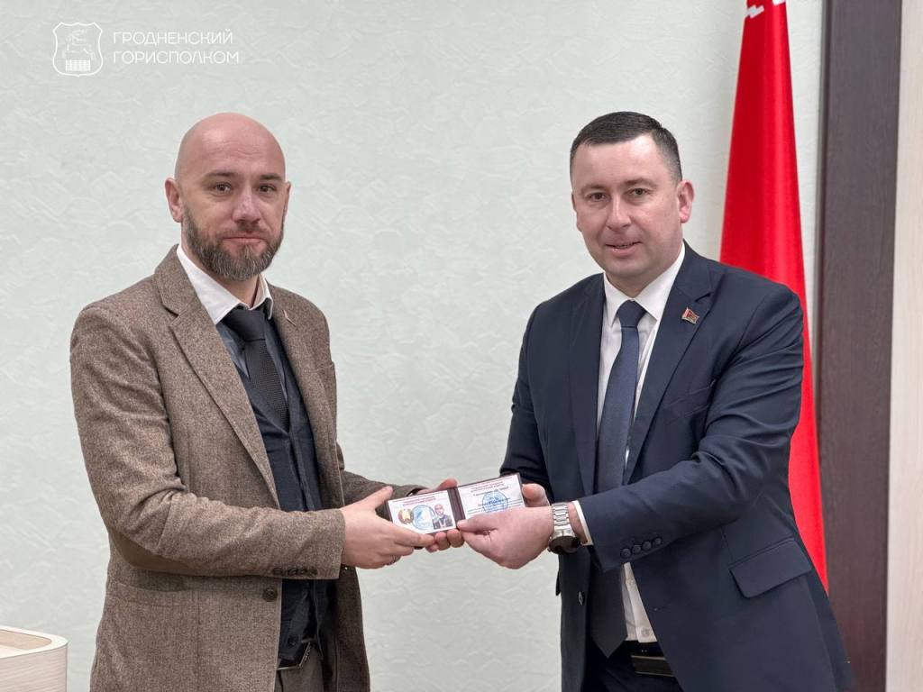 Пасведчанне дырэктара ўнітарнага дзяржаўнага камунальнага прадпрыемства Леаніду Жуку уручыў старшыня гарвыканкаму Андрэй Хмель на працоўнай нарадзе.
