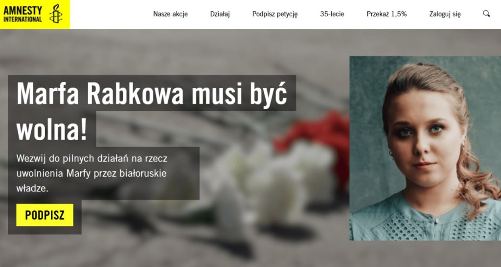 Amnesty International Polska збірае подпісы ў падтрымку Марфы — іх хочуць перадаць кіраўніку МЗС Польшчы, каб ён узнімаў пытанне вызвалення беларускай палітзняволенай на міжнароднай арэне.