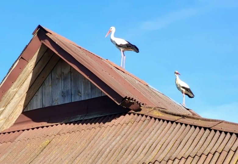 “Нядаўна мы даслалі Дзяніс Івашын фотаздымкі з нашага лецішча. Сярод іншых да яго меўся патрапіць і момант, калі на даху хаты затрымаліся двое буслоў. Гэта адбылося напрыканцы красавіка. Падаецца, гэта так бы мовіць “нашыя” буслы, якія штогод прылятаюць у ваколіцы да сваёй бусьлянкі. Я памятаю, як яны ляталі ў тым ліку і над нашым участкам у пошуках ежы для сябе й сваіх бусьлянятаў. Але бадай што ўпершыню яны абодва вырашылі “праверыць на трываласьць” наш дах.