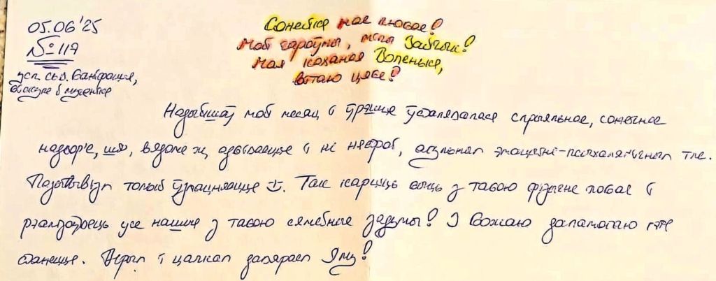 “Усё-ткі нашыя хваляваньні за Дзяніс Івашын ня мелі падставаў. Выглядае на тое, што прычынай затрымкі карэспандэнцыі Дзяніса ё час летніх адпачынкаў супрацоўнікаў турмы. Сёньня і ўчора мы з маці атрымалі ад нашага ваяра ліст і паштоўку. Паштоўка – з 1 чэрвеня, а ліст Дзяніс наагул напісаў напярэдадні сваіх Народзінаў. Як бачна, настрой і фізычны стан ягоныя не зьмяніліся, то бок усё ў адносным парадку”.