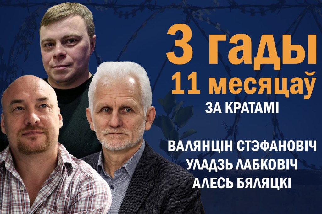 3 гады і 11 месяцаў таму затрымалі Алеся Бяляцкага, Валянціна Стэфановіча і Уладзіміра Лабковіча.